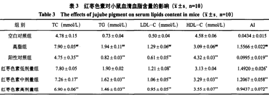 4、大棗黑色素對小白鼠肝部LPL、HL和總脂酶魅力的危害
